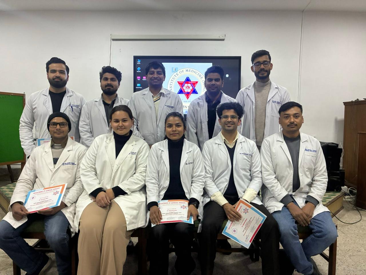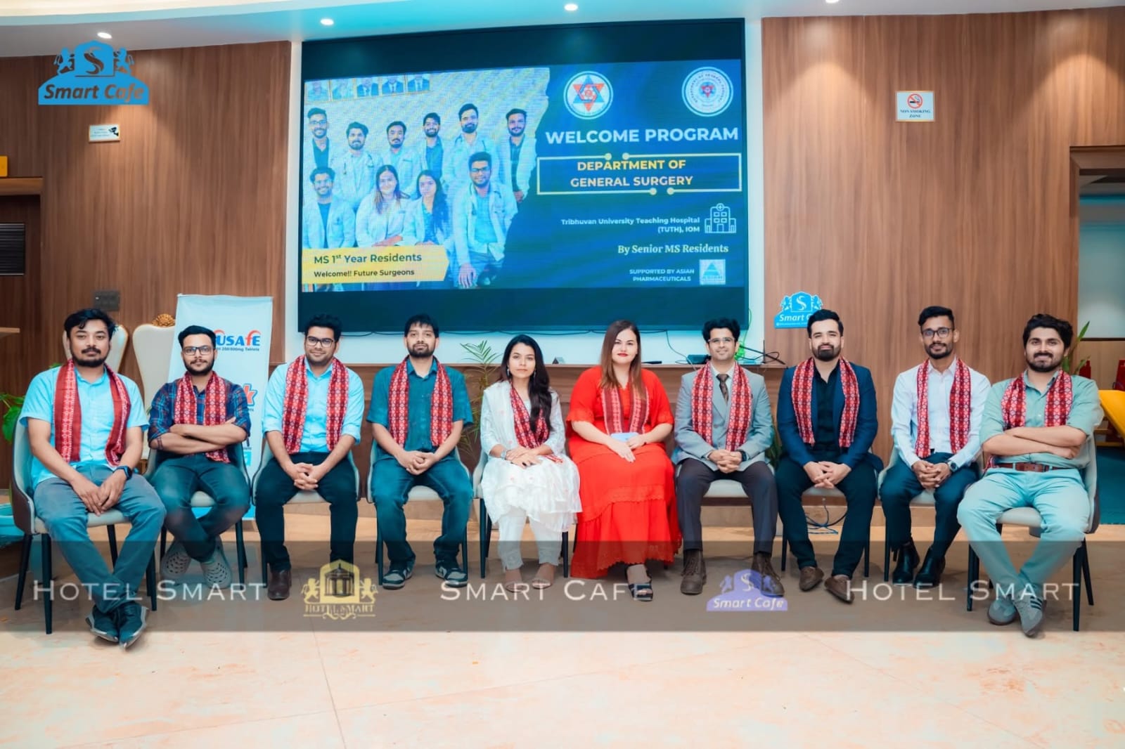 (LEFT TO RIGHT: standing) Dr. Krishna Kumar Yadav, Dr. Chitrasen Yadav, Dr. Milan KC, Dr. Sudhan Subedi, Dr. Prajwal Khatiwada, Dr. Prekshan Rimal, Dr. Janugade Harshwardhan Dilip, Dr. Sanjeeb Kumar Jha.